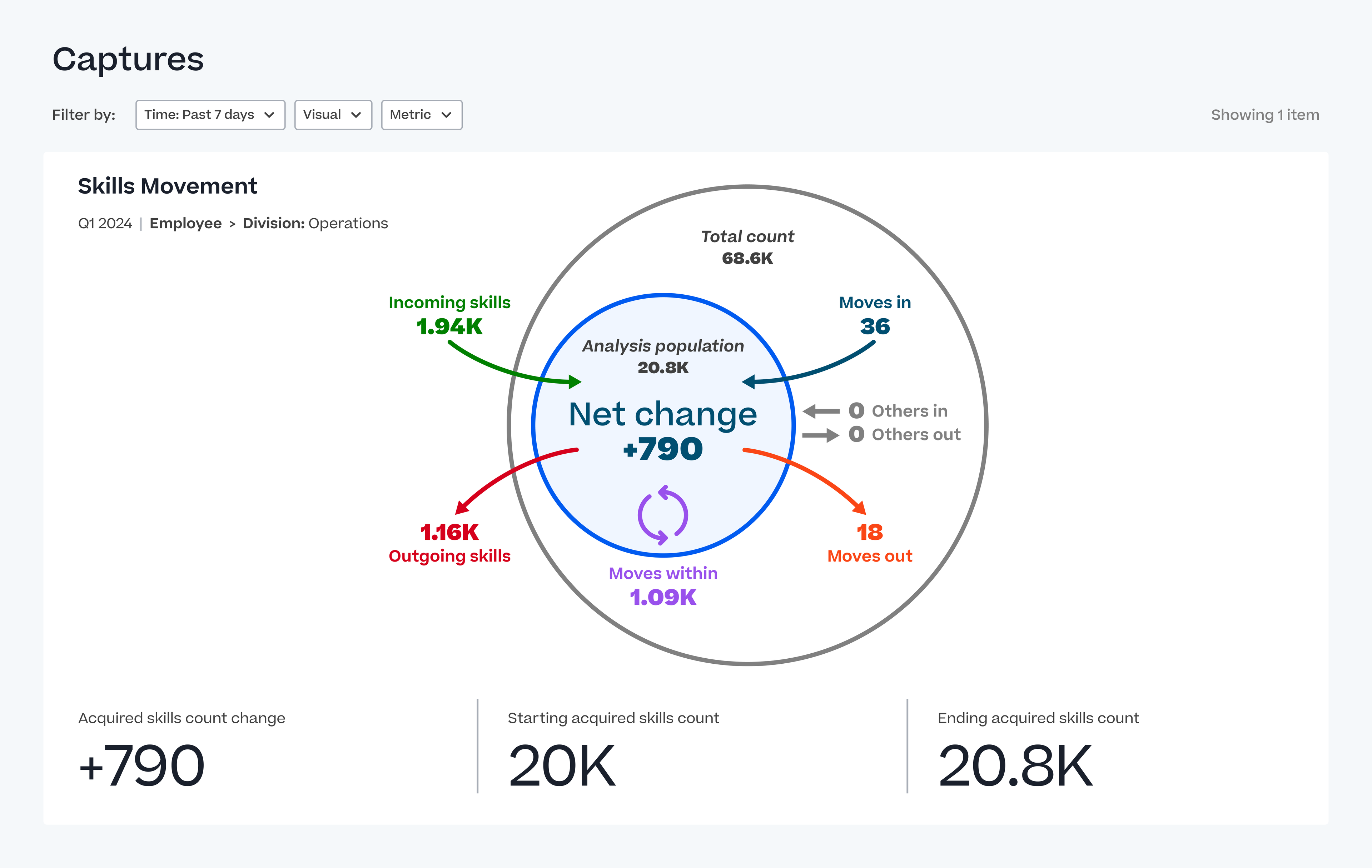 - Identifizieren Sie Kompetenzlücken und diagnostizieren Sie deren Ursachen, indem Sie die Zu- und Abgänge von Skills in Ihrem Unternehmen verfolgen